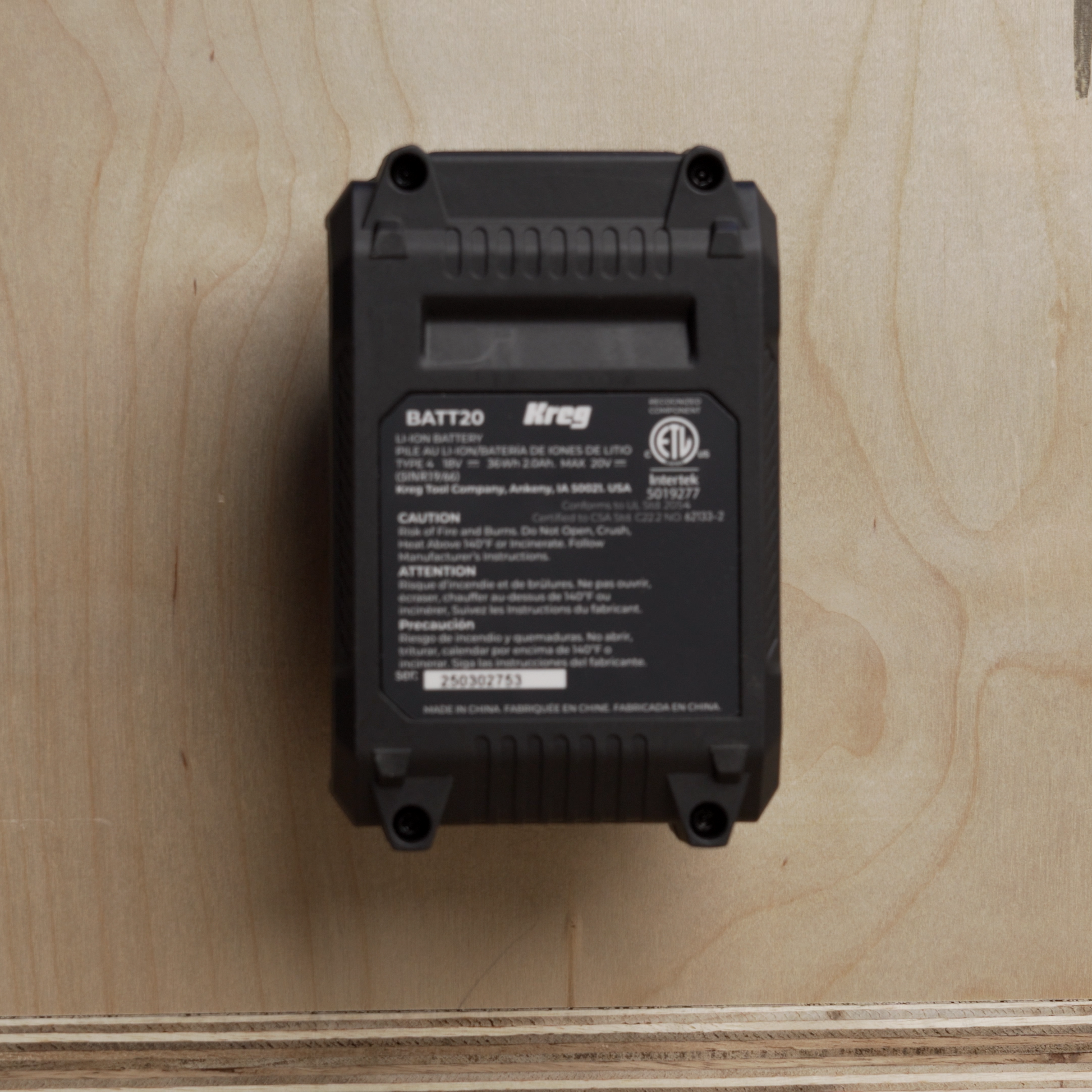 This 3D printed battery holder can be screwed onto a cabinet either vertically or upside down. A Kreg 18v battery slides in and securely clicks into place. Does not include screws. Battery not included.