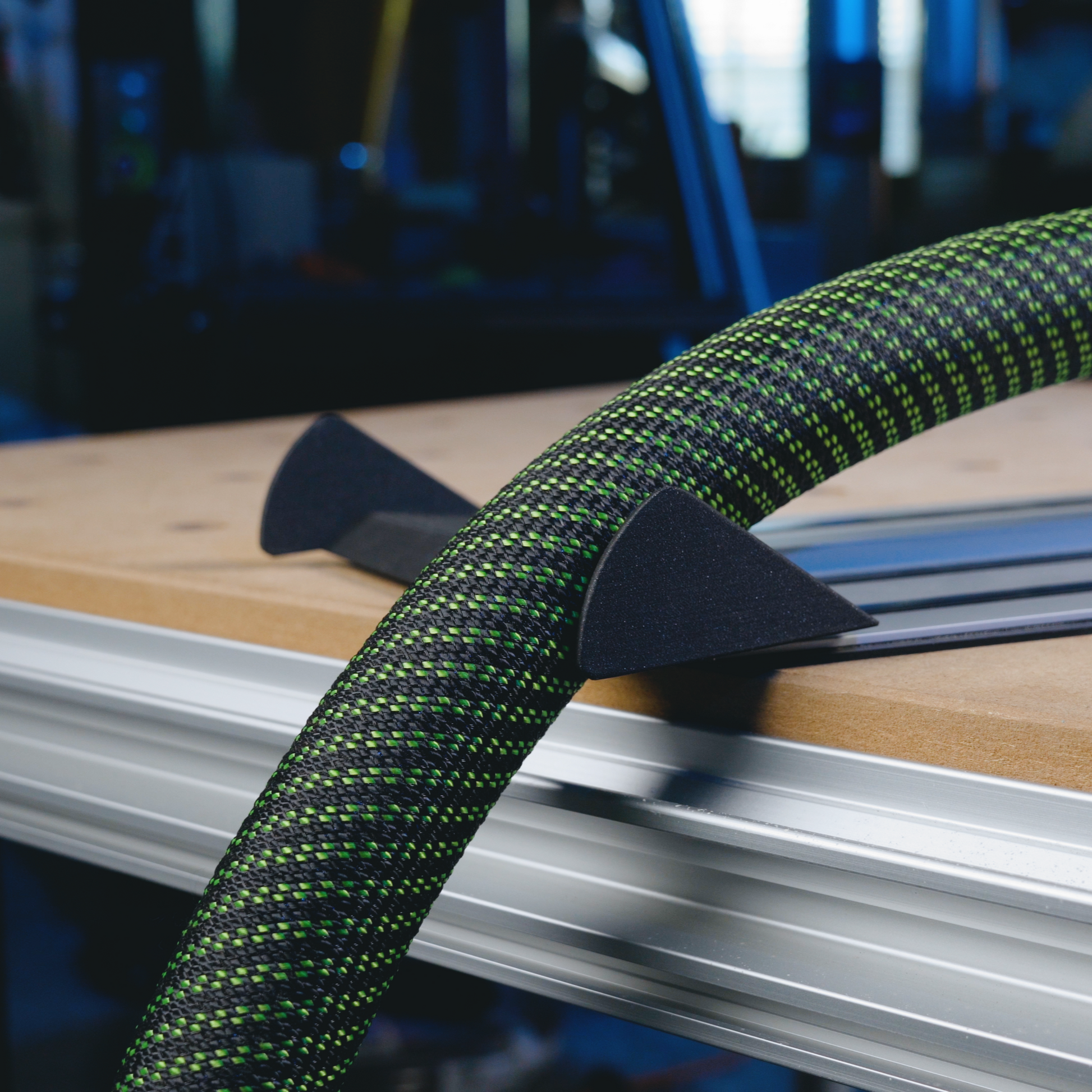 Track saws are great, but the sharp aluminum edges can cause your hose and cord to snag - or worse - cut.